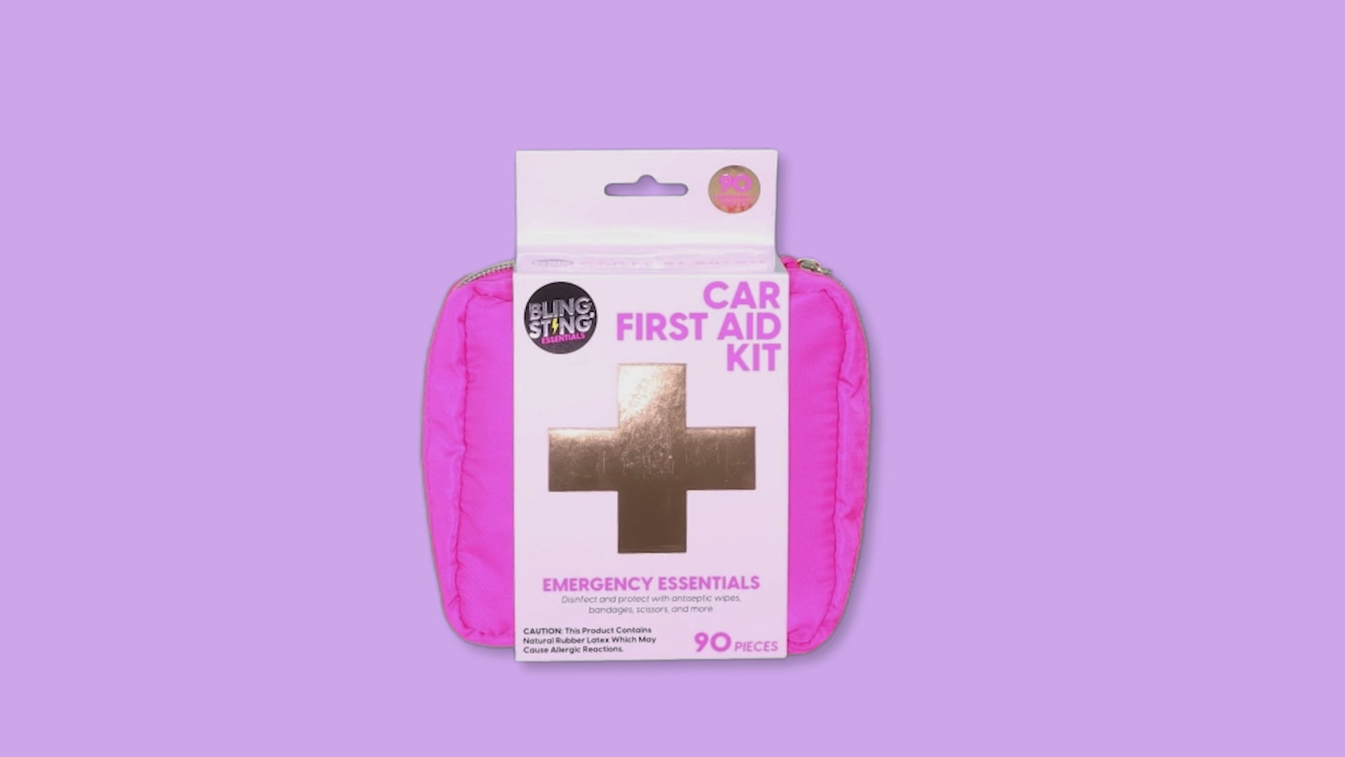 Perfect for the car, diaper bag, backpack ... this hot pink, soft case kit contains 90 first-aid essentials. This super-cute, super-lightweight zipper pouch with a branded charm includes scissors, antiseptic wipes, bandages, alcohol pads, tape roll, safety gloves, gauze pads, and non-adherent dressings.